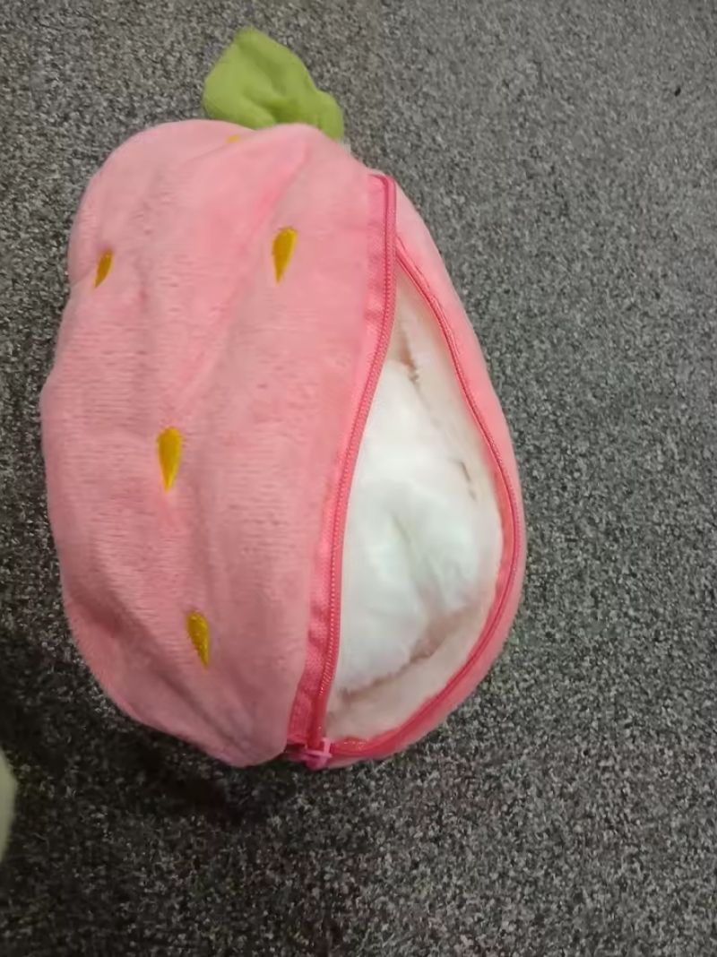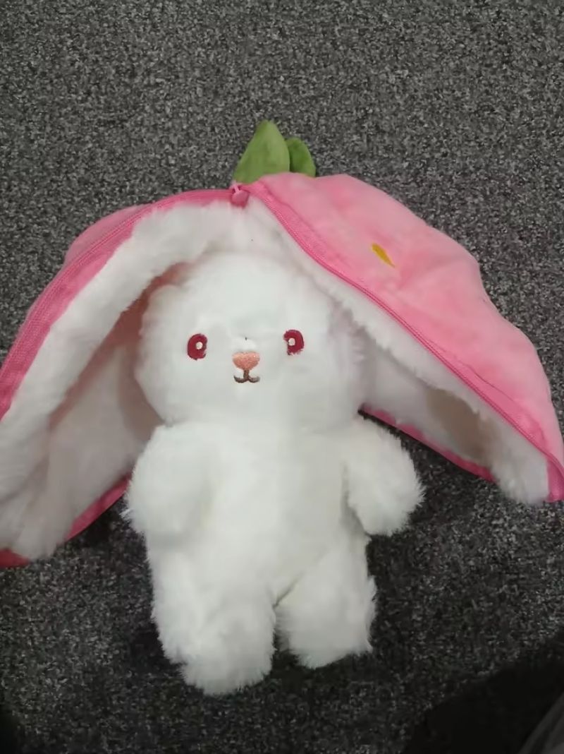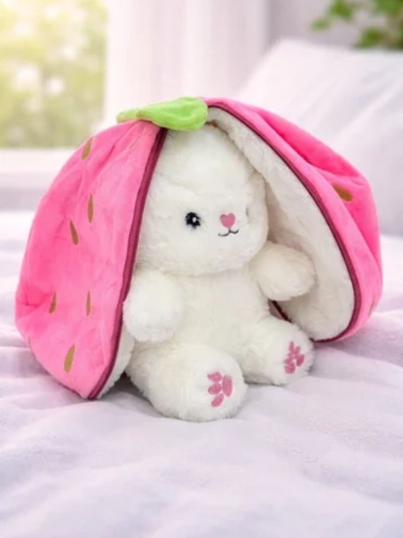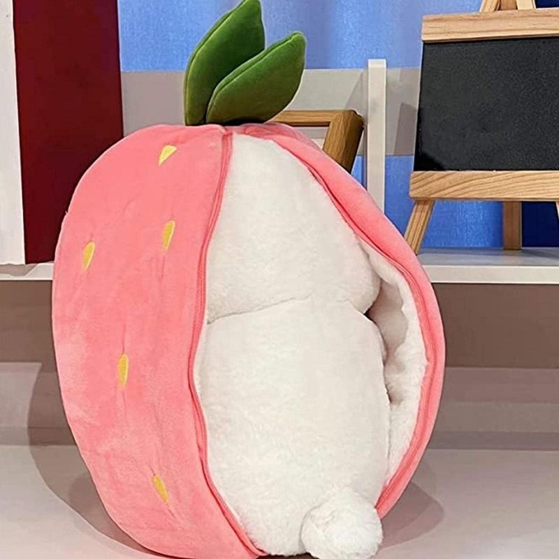 🎈Open this pink strawberry along the zipper and you will get a cute white bunny pillow. It is amazing! It will be a good companion for you.🎁